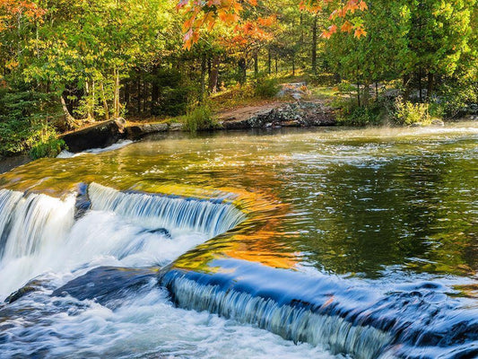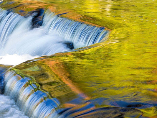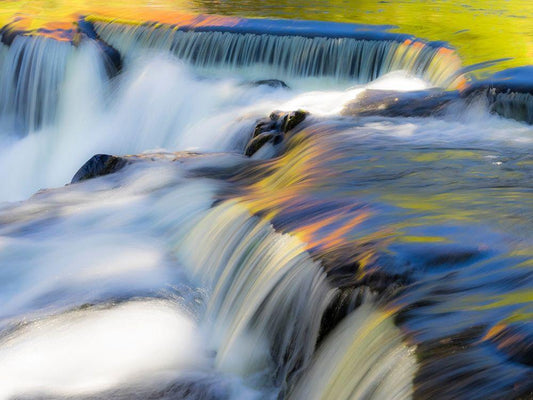 US-Michigan-Upper Peninsula Water flowing over Bond Falls with reflections White Modern Wood Framed Art Print with Double Matting by Eggers, Julie
