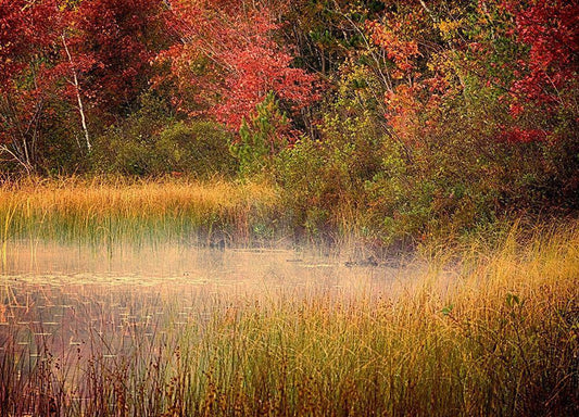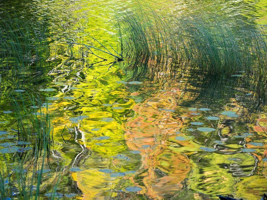 US-Michigan-Upper Peninsula Reflections of fall colors in Council Lake White Modern Wood Framed Art Print with Double Matting by Eggers, Julie