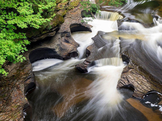 Michigan-Upper Peninsula The Wild and Scenic Presque Isle River creates these Potholes White Modern Wood Framed Art Print with Double Matting by Eggers, Julie