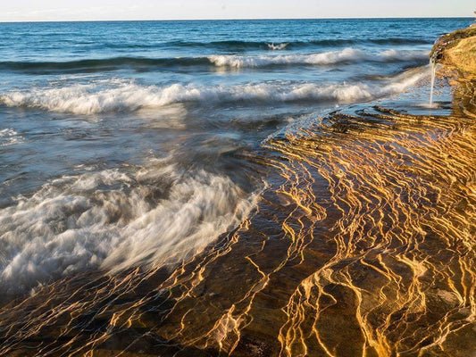 Michigan-Upper Peninsula Waterfall and sandstone rock-Pictured Rocks National Lakeshore-Michigan White Modern Wood Framed Art Print with Double Matting by Eggers, Julie