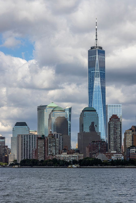USA-New York New York City skyline White Modern Wood Framed Art Print with Double Matting by Looney, Hollice
