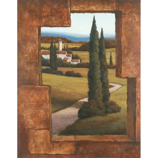 Toscany Vista II Black Modern Wood Framed Art Print with Double Matting by Unknown
