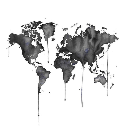 WATERCOLOR WORLD MAP Black Modern Wood Framed Art Print with Double Matting by Atelier B Art Studio