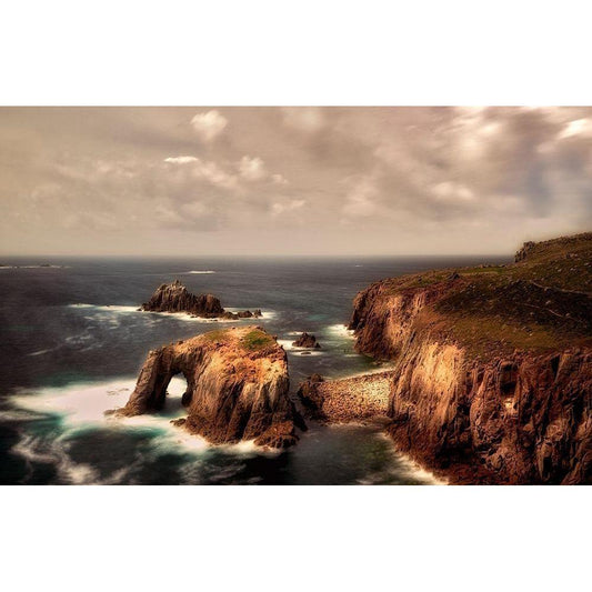 Enysdodman Arch. or Lands End Arch. Cornwall, England Black Modern Wood Framed Art Print with Double Matting by Frates, Dennis