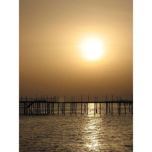 Golden Sunset Black Modern Wood Framed Art Print with Double Matting by Anonymous