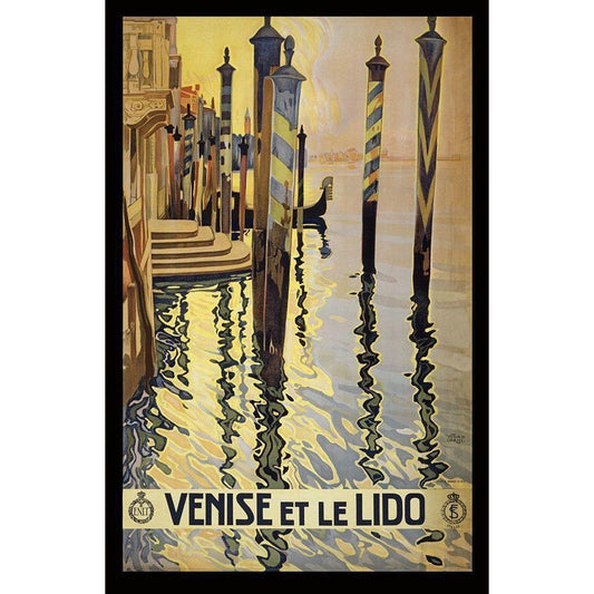 Venice Lido Black Modern Wood Framed Art Print with Double Matting by Anonymous