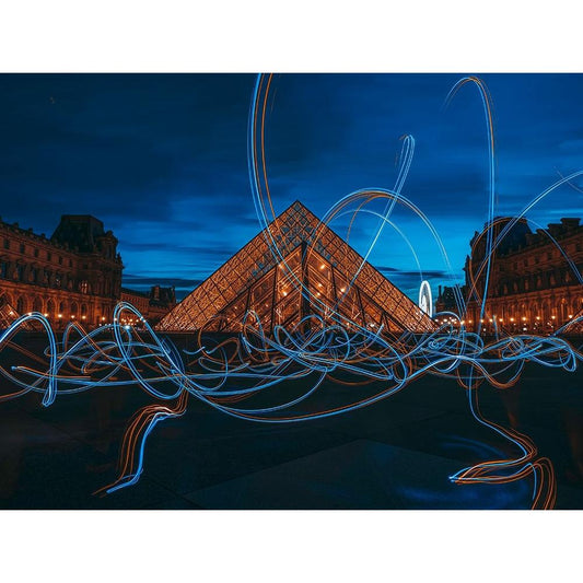 Light Painting At Louvre Museum Black Modern Wood Framed Art Print with Double Matting by Amir