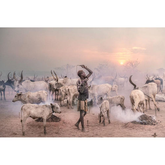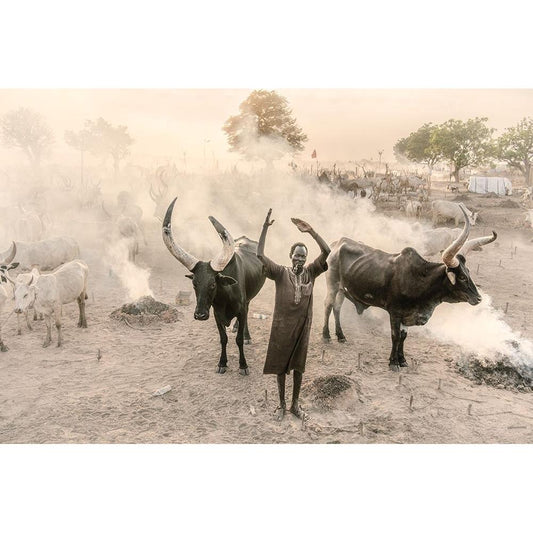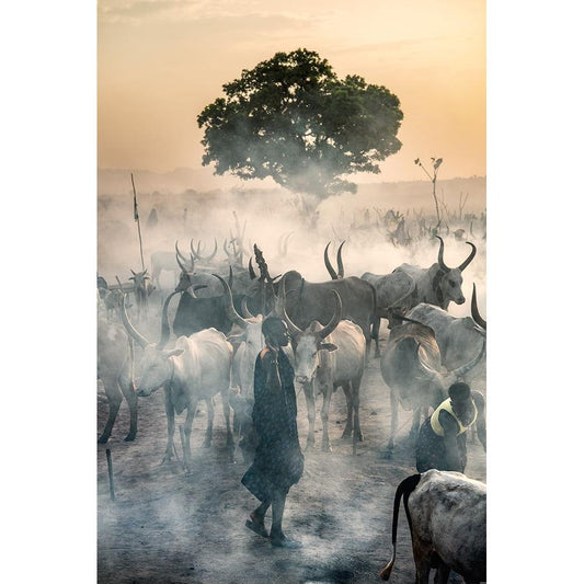 At One With My Cattle Black Modern Wood Framed Art Print with Double Matting by Cole, Trevor