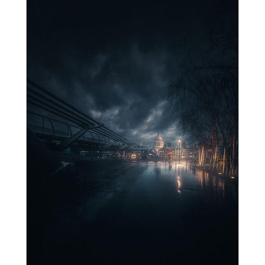 Evening-Tyne Bridges Black Modern Wood Framed Art Print with Double Matting by Wride, Linda