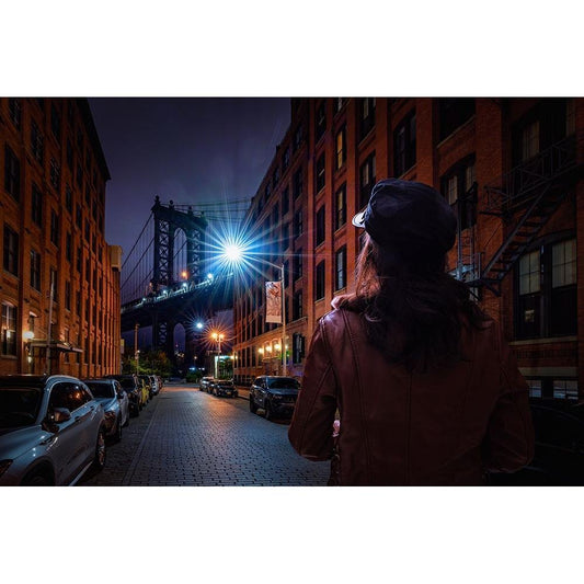 Manhattan Bridge Black Modern Wood Framed Art Print with Double Matting by Foto, Patrick