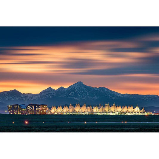 Denver International Airport In Dusk With Longs Peak As Background Black Modern Wood Framed Art Print with Double Matting by Xu, Mei