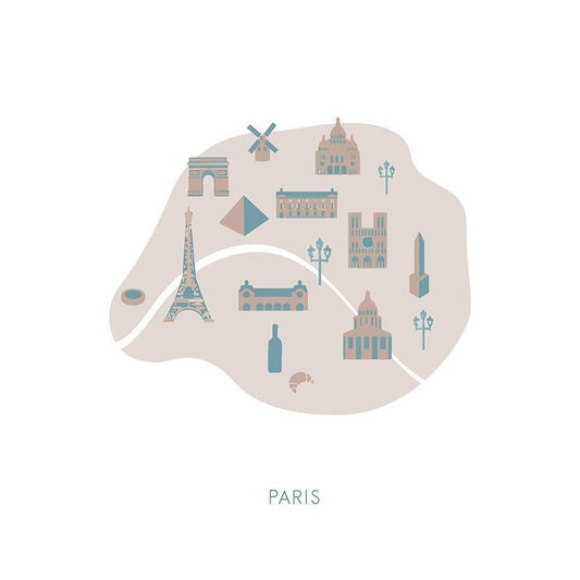 Paris Map Black Modern Wood Framed Art Print with Double Matting by 1x Studio II