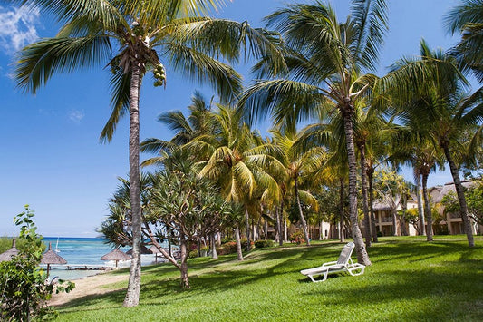 Tropical Beach in Mauritius Black Ornate Wood Framed Art Print with Double Matting by Jenny Rainbow Fine Art
