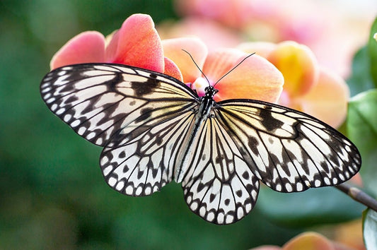 Paper Kite Tropical Butterfly 1 Black Ornate Wood Framed Art Print with Double Matting by Jenny Rainbow Fine Art