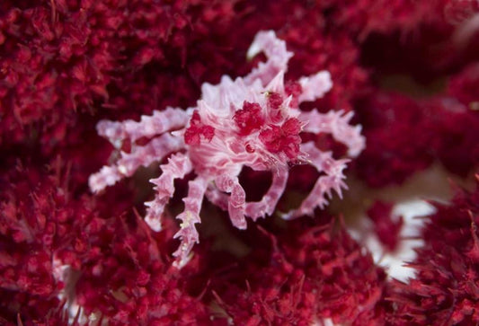 Indonesia Decorator crab on oft corals White Modern Wood Framed Art Print with Double Matting by Shimlock, Jones