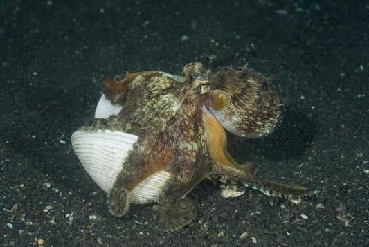 Indonesia A marginated octopus with shell White Modern Wood Framed Art Print with Double Matting by Shimlock, Jones