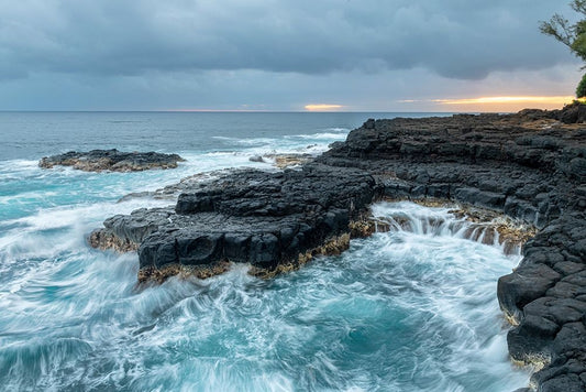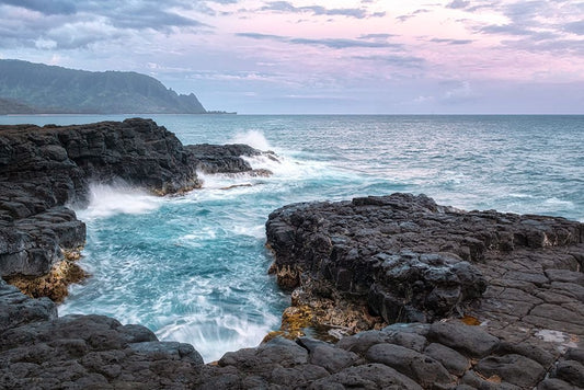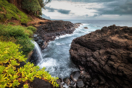 Queens Bath East Black Ornate Wood Framed Art Print with Double Matting by Head, Danny