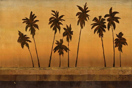 Sunset Palms I Black Ornate Wood Framed Art Print with Double Matting by Martin, Cheryl