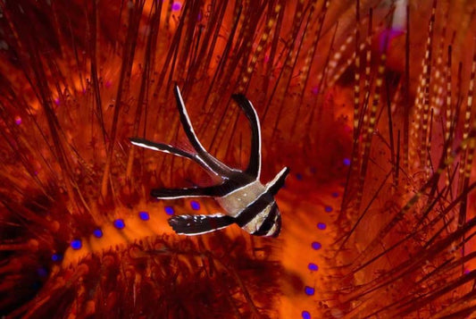 Indonesia, Sulawesi, Banggai cardinalfish White Modern Wood Framed Art Print with Double Matting by Shimlock, Jones