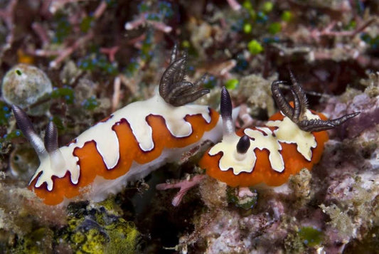 Indonesia, Lembeh Straits Two nudibranch feeding White Modern Wood Framed Art Print with Double Matting by Shimlock, Jones