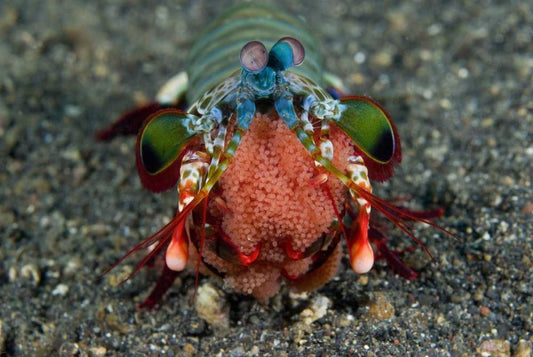 Indonesia Female Mantis shrimp with eggs White Modern Wood Framed Art Print with Double Matting by Shimlock, Jones