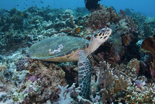 Indonesia, Komodo NP Green turtle over coral White Modern Wood Framed Art Print with Double Matting by Shimlock, Jones
