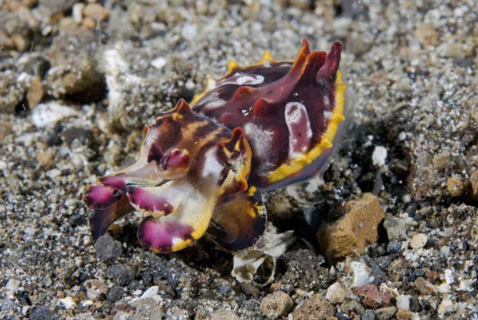 Indonesia, A Pfeffers flamboyant cuttlefish White Modern Wood Framed Art Print with Double Matting by Shimlock, Jones