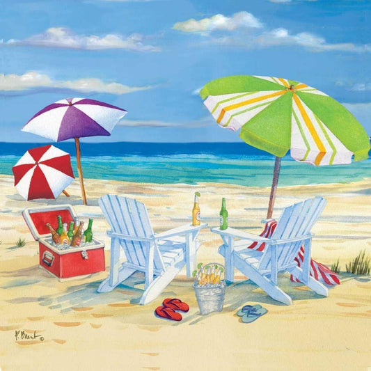 Umbrella Beachscape IV Black Ornate Wood Framed Art Print with Double Matting by Brent, Paul