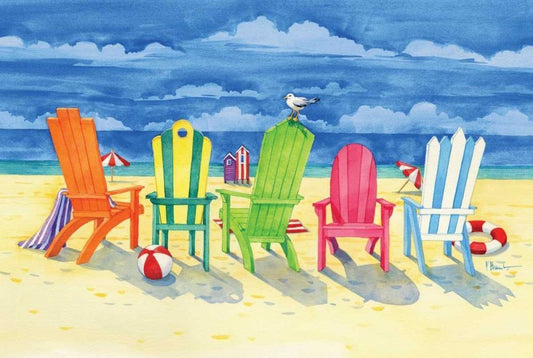 Beachside Chairs Black Ornate Wood Framed Art Print with Double Matting by Brent, Paul