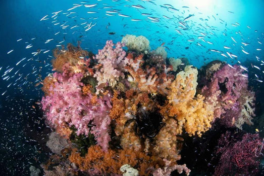 Indonesia Pristine coral reef off Misool Island White Modern Wood Framed Art Print with Double Matting by Shimlock, Jones