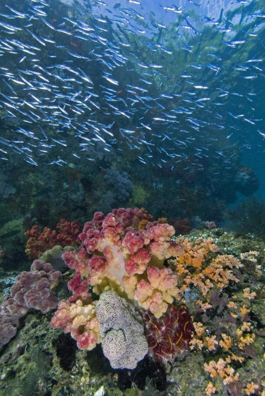 Indonesia Corals and glassy cardinalfish White Modern Wood Framed Art Print with Double Matting by Shimlock, Jones