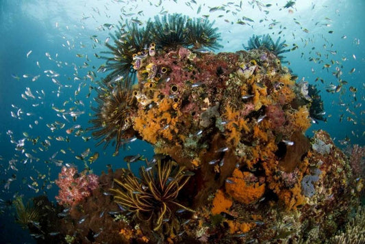 Indonesia, Komodo NP Protected coral reef White Modern Wood Framed Art Print with Double Matting by Shimlock, Jones