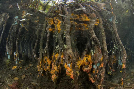 Indonesia, Misool Islands Coral on mangroves White Modern Wood Framed Art Print with Double Matting by Shimlock, Jones