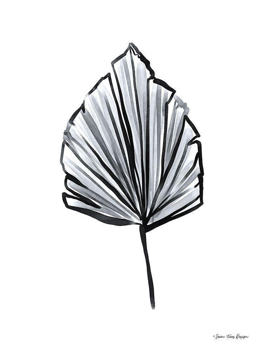 Black Watercolor Leaf White Modern Wood Framed Art Print with Double Matting by Seven Trees Design