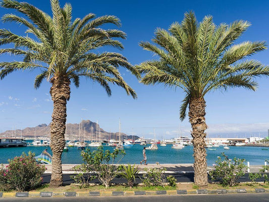 View of Marina and Porto Grande City Mindelo-a seaport on the island Sao Vicente-Cape Verde Africa White Modern Wood Framed Art Print with Double Matting by Zwick, Martin