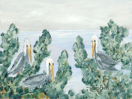 The Pelican Perch White Modern Wood Framed Art Print with Double Matting by Ebert, Roey