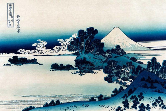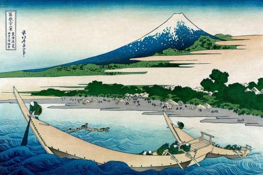 Shore of Tago Bay, Ejiri at Tokaido, 1830 White Modern Wood Framed Art Print with Double Matting by Hokusai