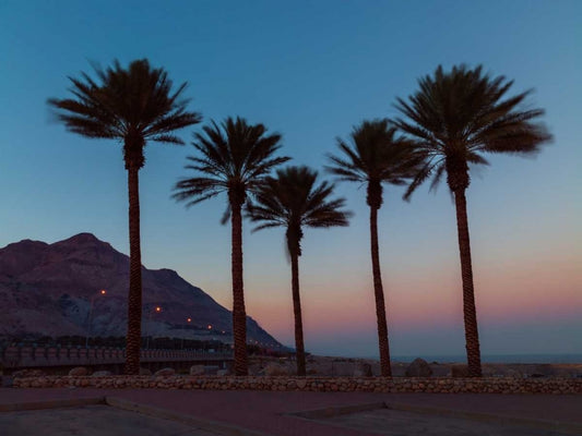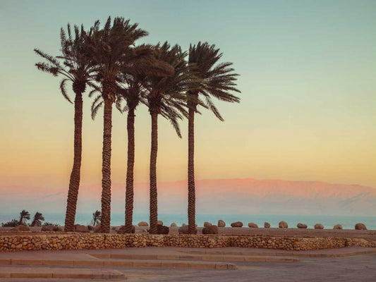 Palm trees on beach of Dead sea, Israel White Modern Wood Framed Art Print with Double Matting by Frank, Assaf
