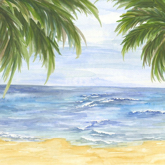 Beach and Palm Fronds I White Modern Wood Framed Art Print with Double Matting by Reed, Tara