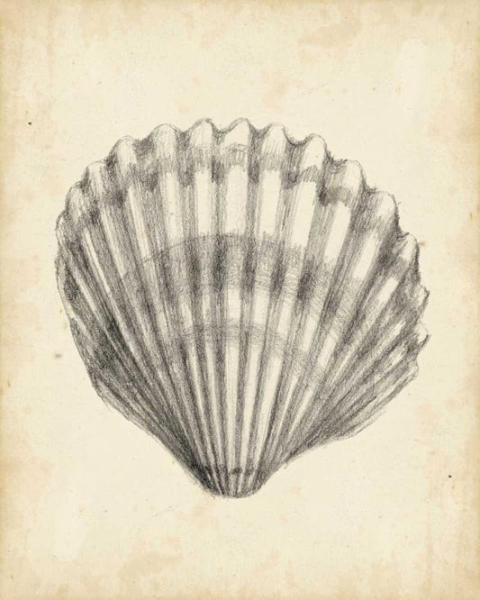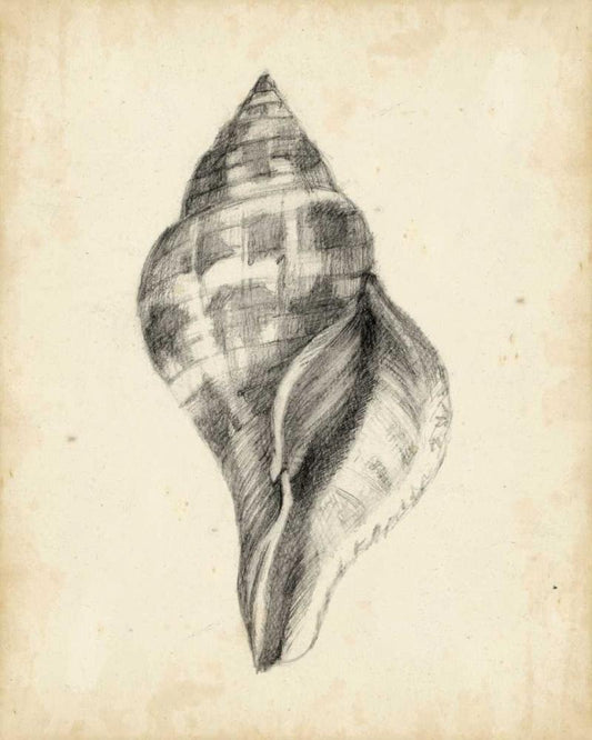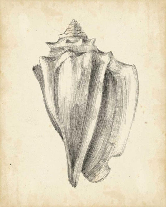 UA CH Shell Sketch I White Modern Wood Framed Art Print with Double Matting by Harper, Ethan