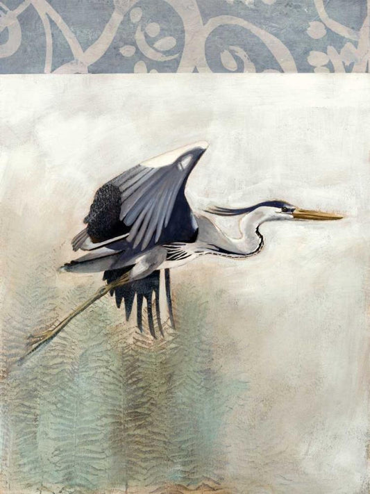 Waterbirds in Mist I White Modern Wood Framed Art Print with Double Matting by McCavitt, Naomi