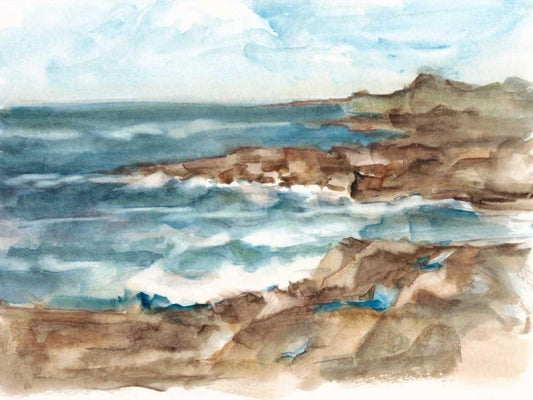 Coastal Watercolor V White Modern Wood Framed Art Print with Double Matting by Harper, Ethan