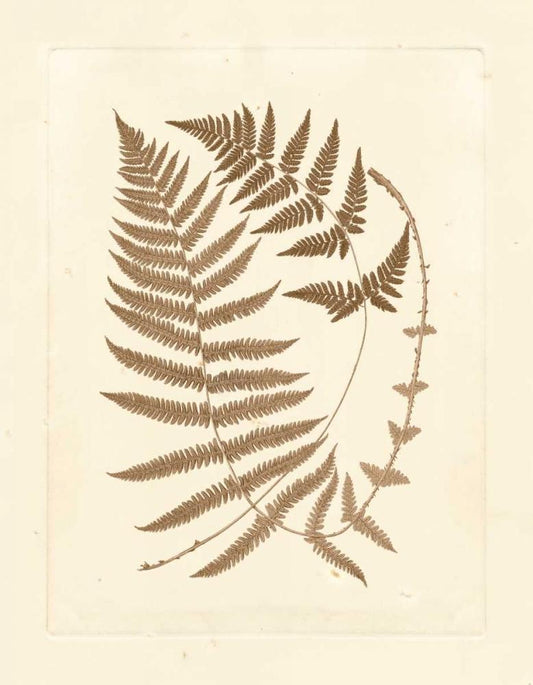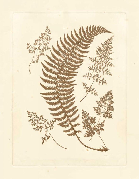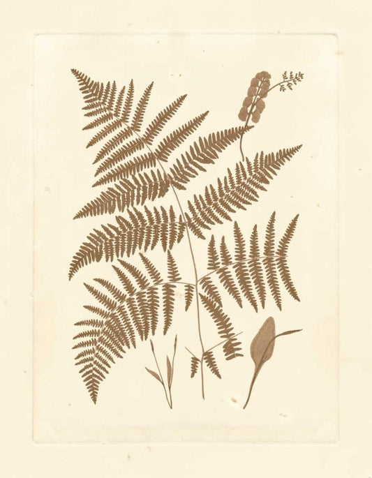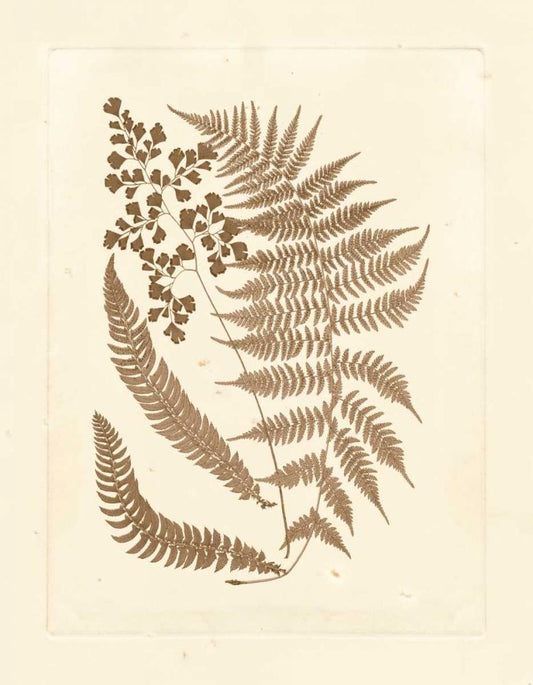 Sepia Ferns I White Modern Wood Framed Art Print with Double Matting by Vision Studio
