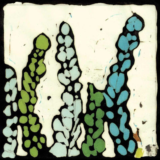 Aqua Batik Botanical IV White Modern Wood Framed Art Print with Double Matting by Davis, Andrea
