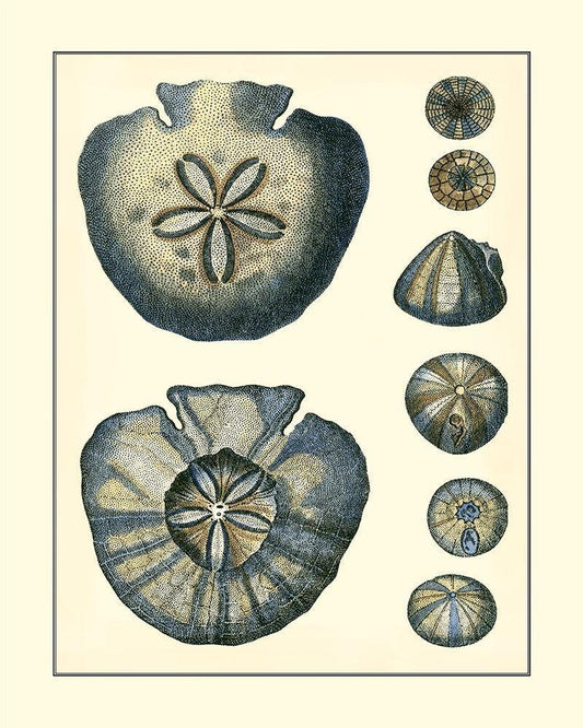 Antique Blue Sanddollar White Modern Wood Framed Art Print with Double Matting by Vision Studio