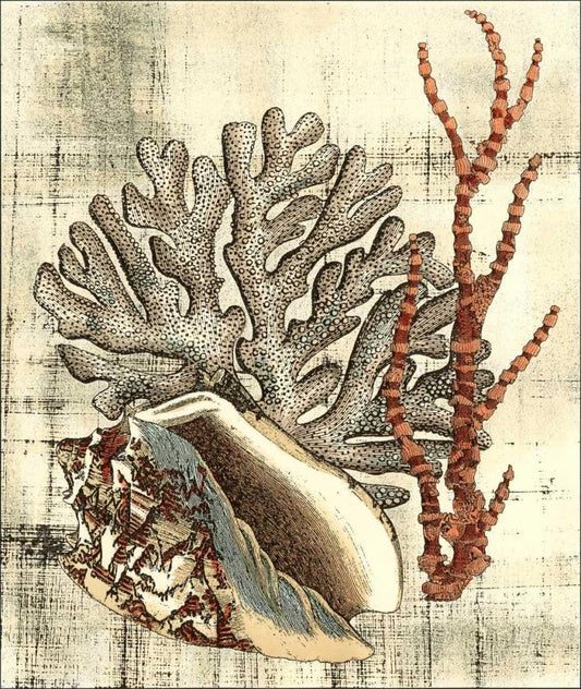 Antique Coral IV White Modern Wood Framed Art Print with Double Matting by Vision Studio