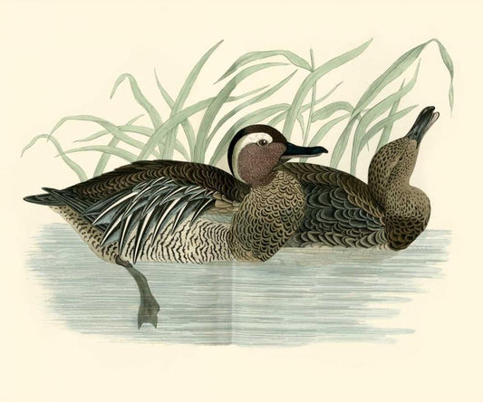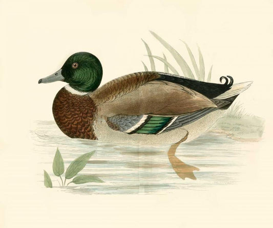 Morris Ducks I White Modern Wood Framed Art Print with Double Matting by Morris
