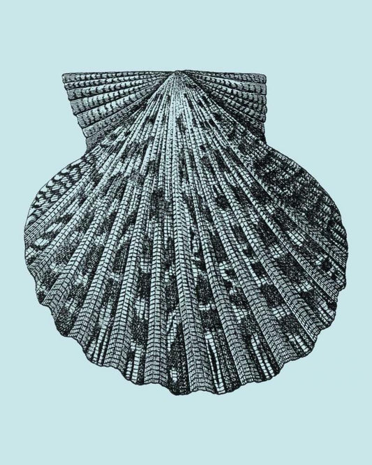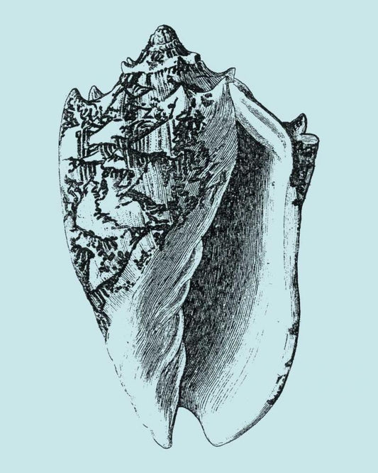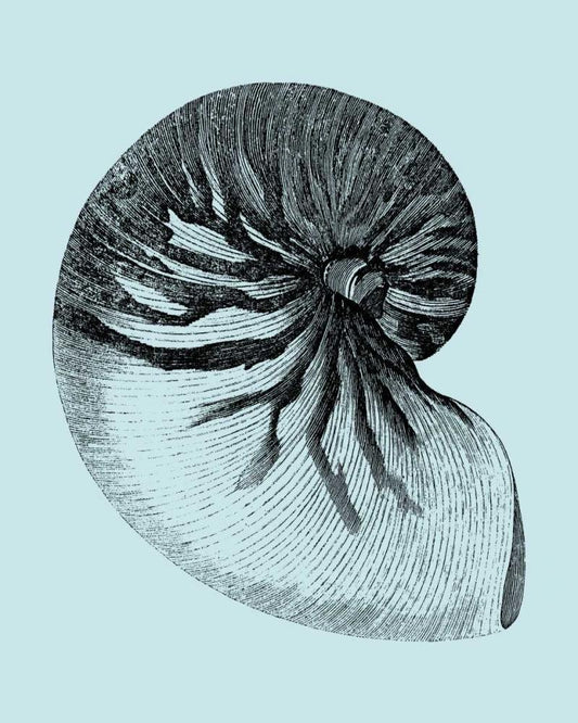 Shells on Aqua I White Modern Wood Framed Art Print with Double Matting by Vision Studio