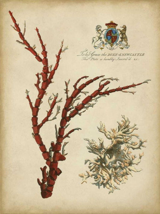 Antique Coral I White Modern Wood Framed Art Print with Double Matting by Vision Studio