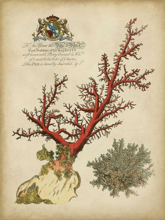 Antique Coral II White Modern Wood Framed Art Print with Double Matting by Vision Studio